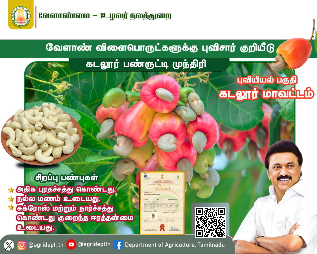 இந்த முயற்சியின் பலனாக, பண்ருட்டி முந்திரி, பண்ருட்டி பலாப்பழம், விருதுநகர் சம்பா வத்தல், இராமநாதபுரம் சித்திரைக்கார் அரிசி, புளியங்குடி எலுமிச்சை மற்றும் செட்டிக்குளம் சின்ன வெங்காயம் ஆகிய ஆறு பாரம்பரிய வேளாண் விளைபொருட்களுக்கு புவிசார் குறியீடு அங்கீகாரம் கிடைத்துள்ளது என்பதை பெருமையுடன் தெரிவித்துக் கொள்கிறோம்.