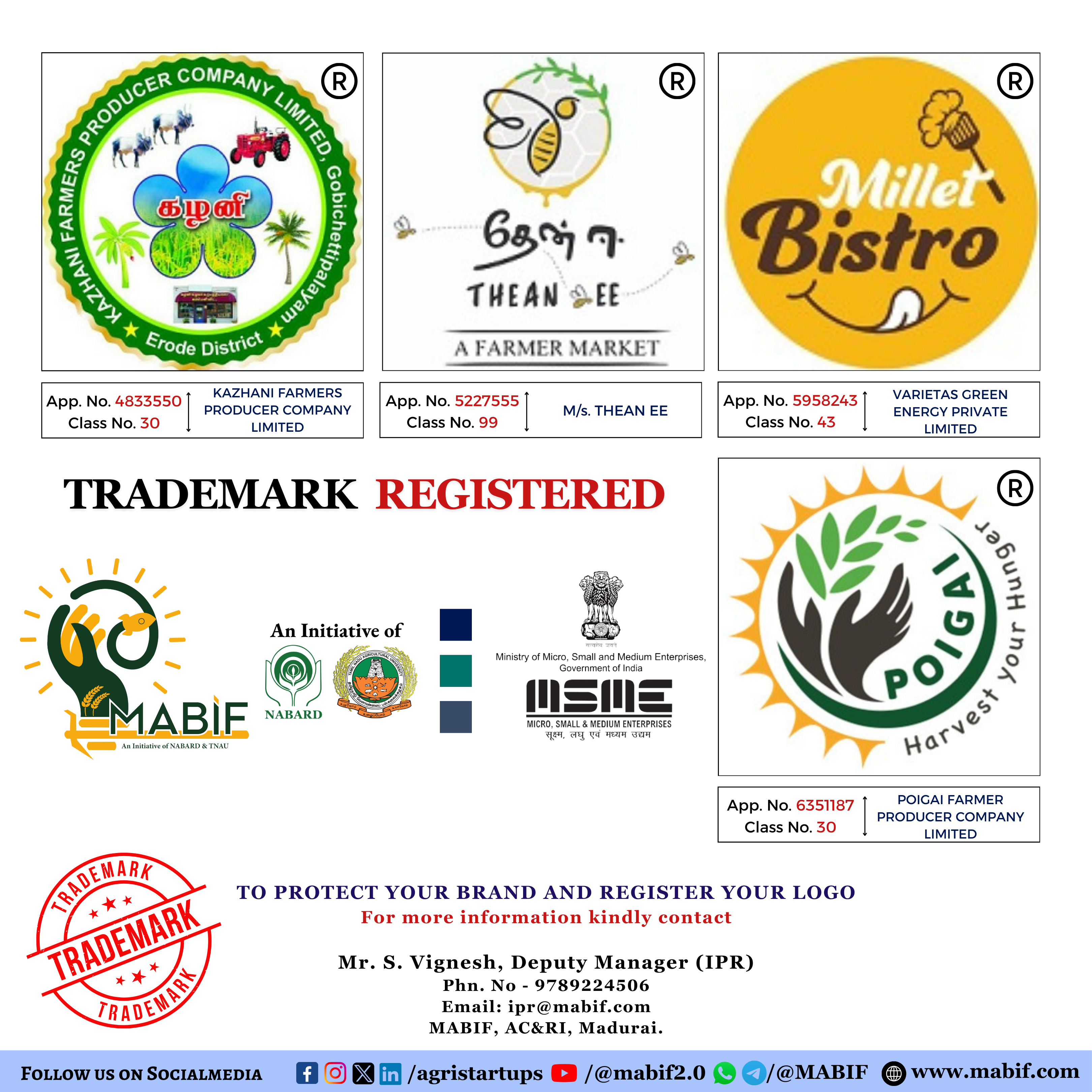 Blog Strengthening Startups through IP Protection! At NABARD MABIF, we’re dedicated to safeguarding the identity and innovation of startups. Through our MABIF Intellectual Property Facilitation Centre (IPFC), we’ve successfully registered 54 Read More » November 26, 2024 No Comments