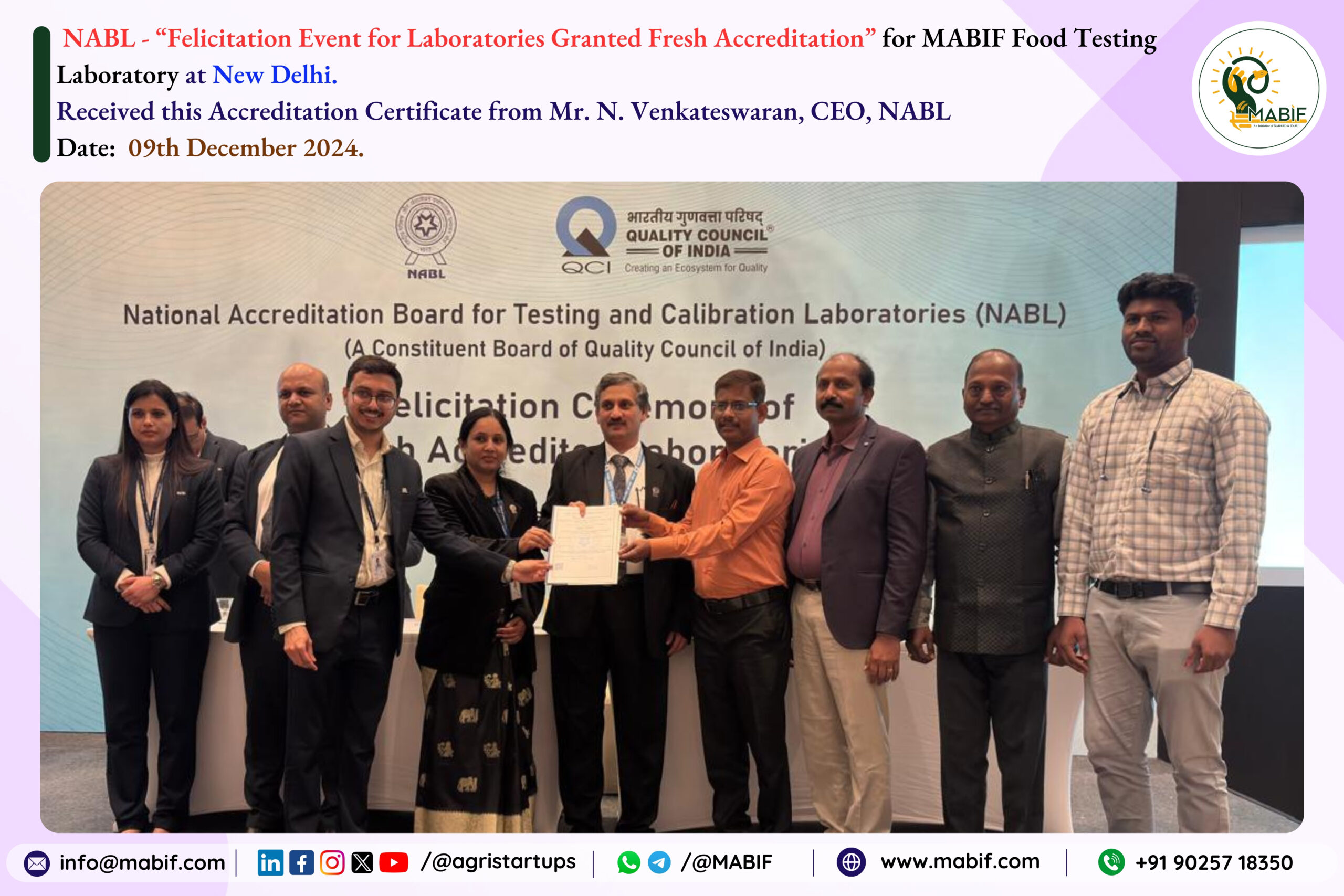 Madurai Agribusiness Incubation Forum (NABARD MABIF) proudly participated in the prestigious “Felicitation Event for Laboratories Granted Fresh Accreditation” held at New Delhi on 9th December