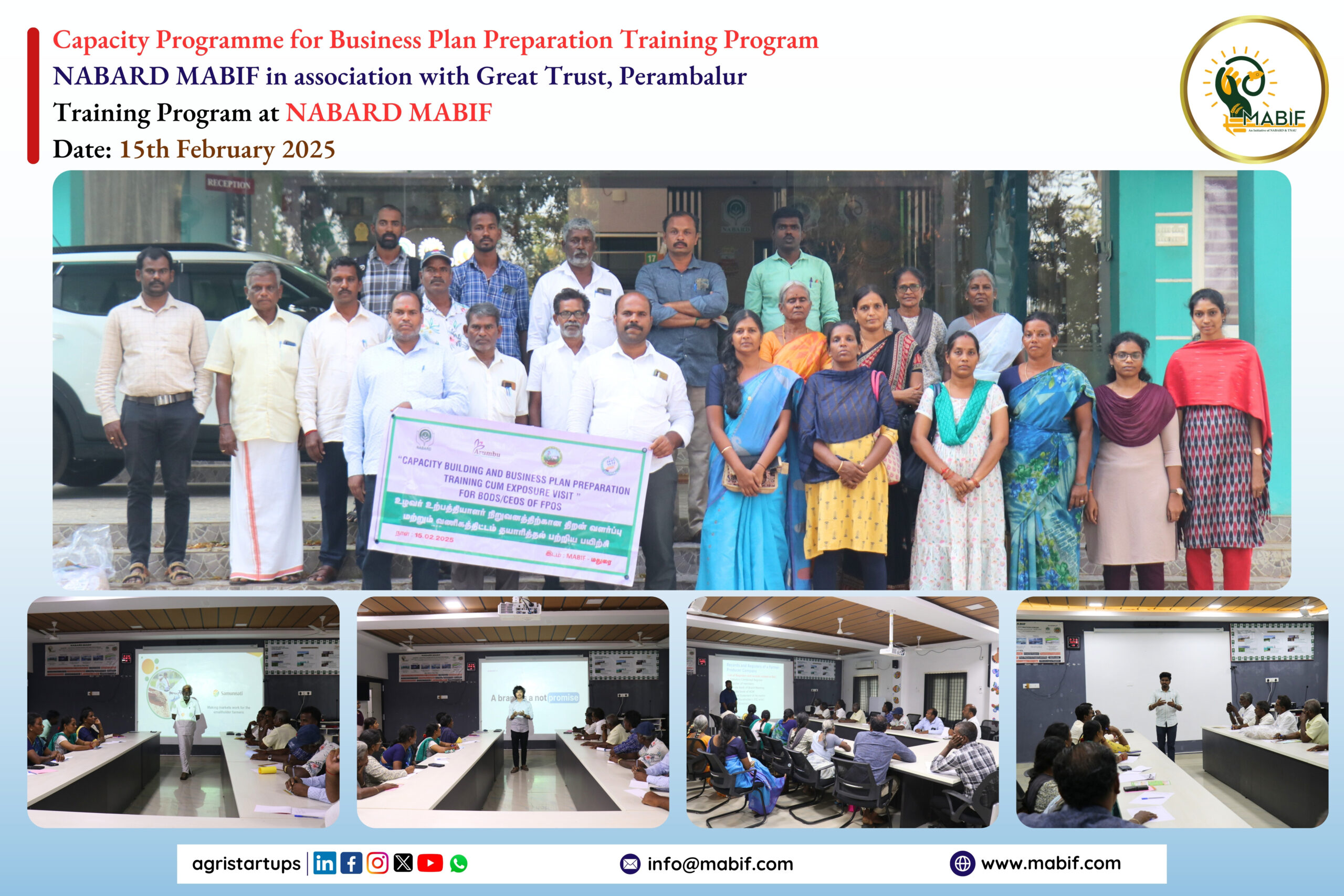 NABARD MABIF, in association with Great Trust, Perambalur, organized a “Capacity Building and Business Plan Preparation Training Program” for BoDs/CEOs of FPOs on 15th February