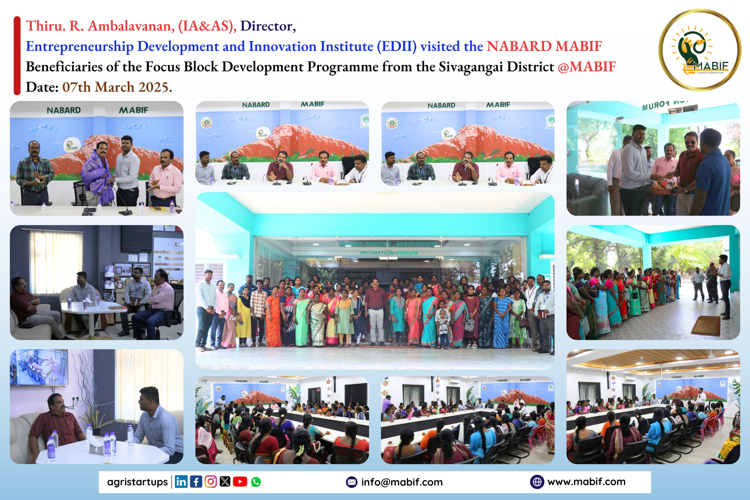 “Thiru. R. Ambalavanan, (IA&AS), Director, Entrepreneurship Development and Innovation Institute (EDII) visited the NABARD MABIF”