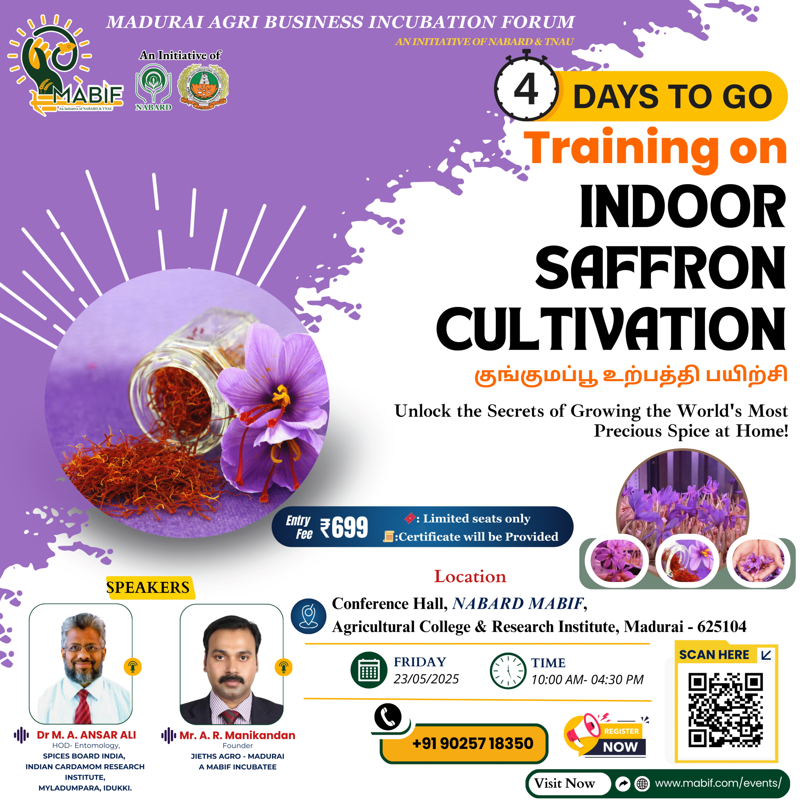 Blog Only 04 Days to Go for our exclusive training on Indoor Saffron Cultivation! 🔔 Countdown Begins! Ever imagined growing saffron — the world’s most precious spice — indoors? Now’s your chance to learn from industry experts and explore Read More » May 19, 2025 No Comments