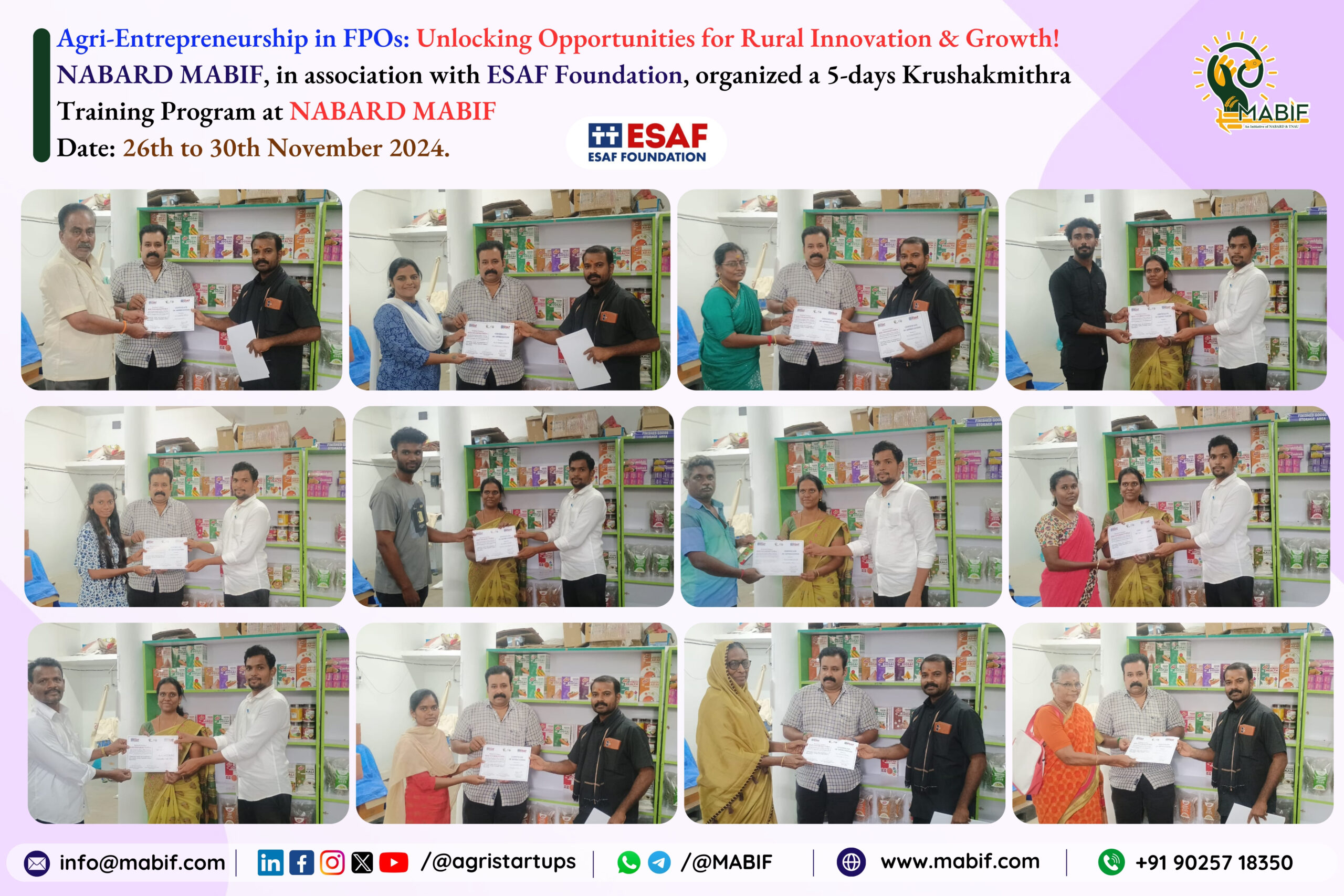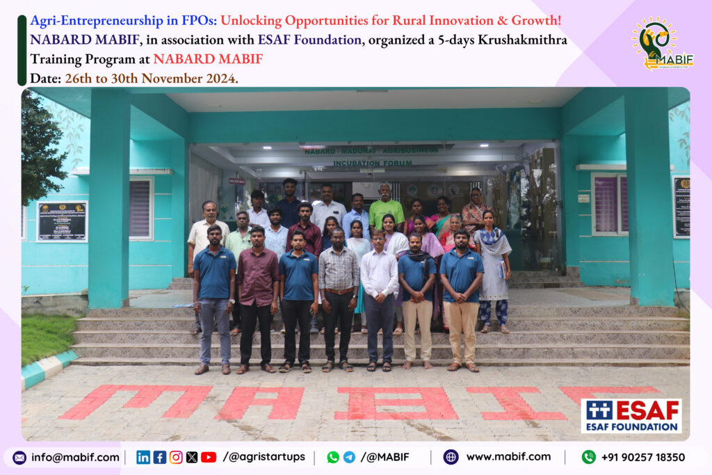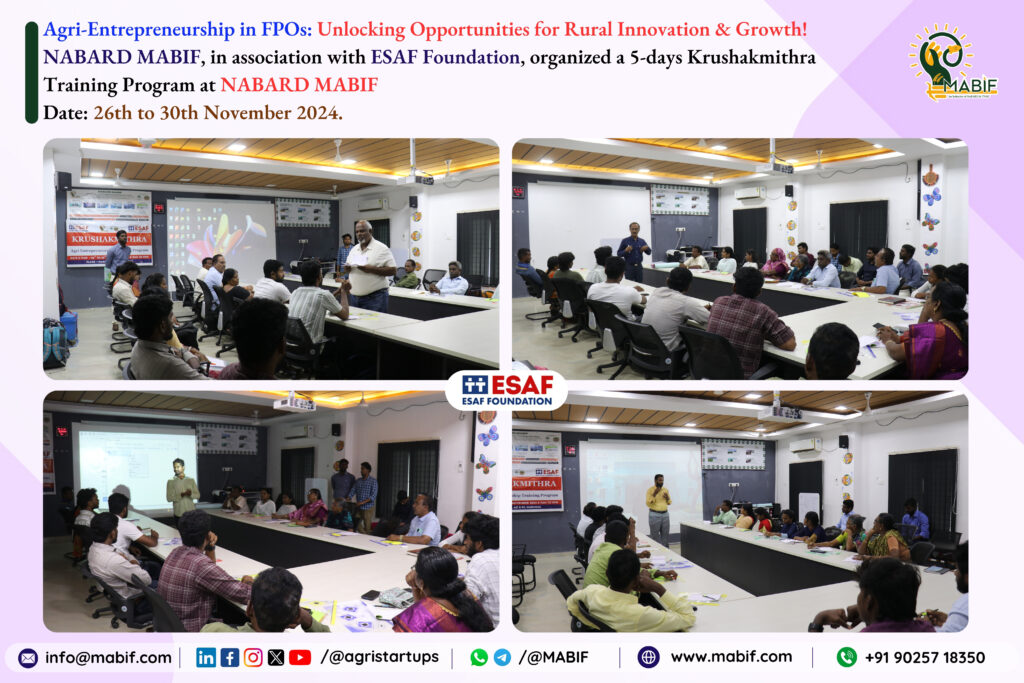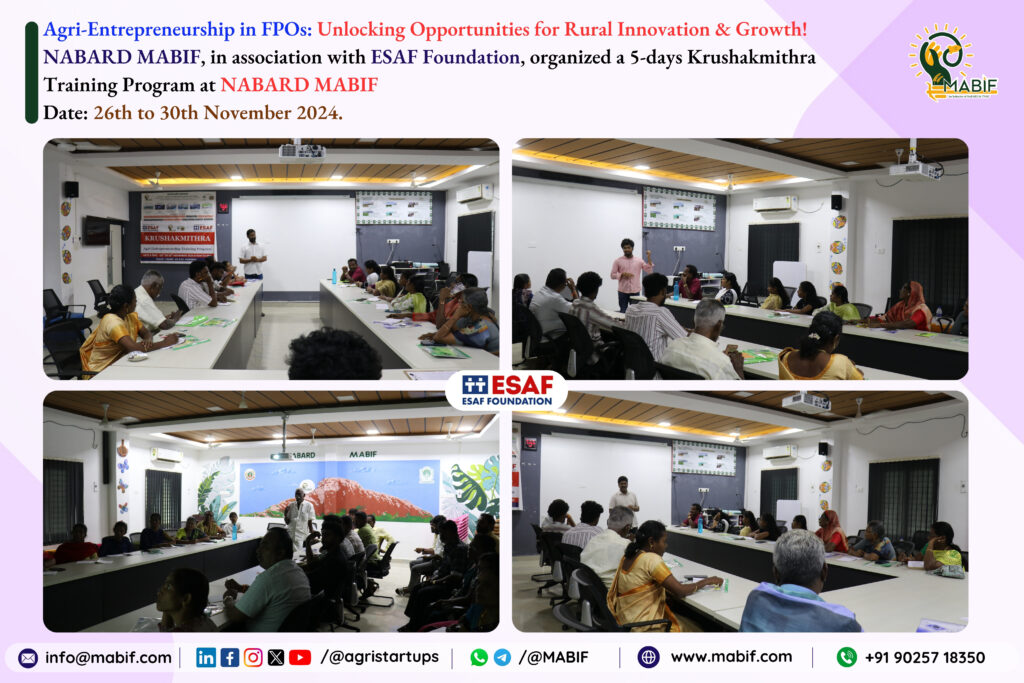NABARD MABIF, in collaboration with ESAF Foundation, organized the 5 days “Krushakmithra Training Program” from 26th to 30th November 2024.