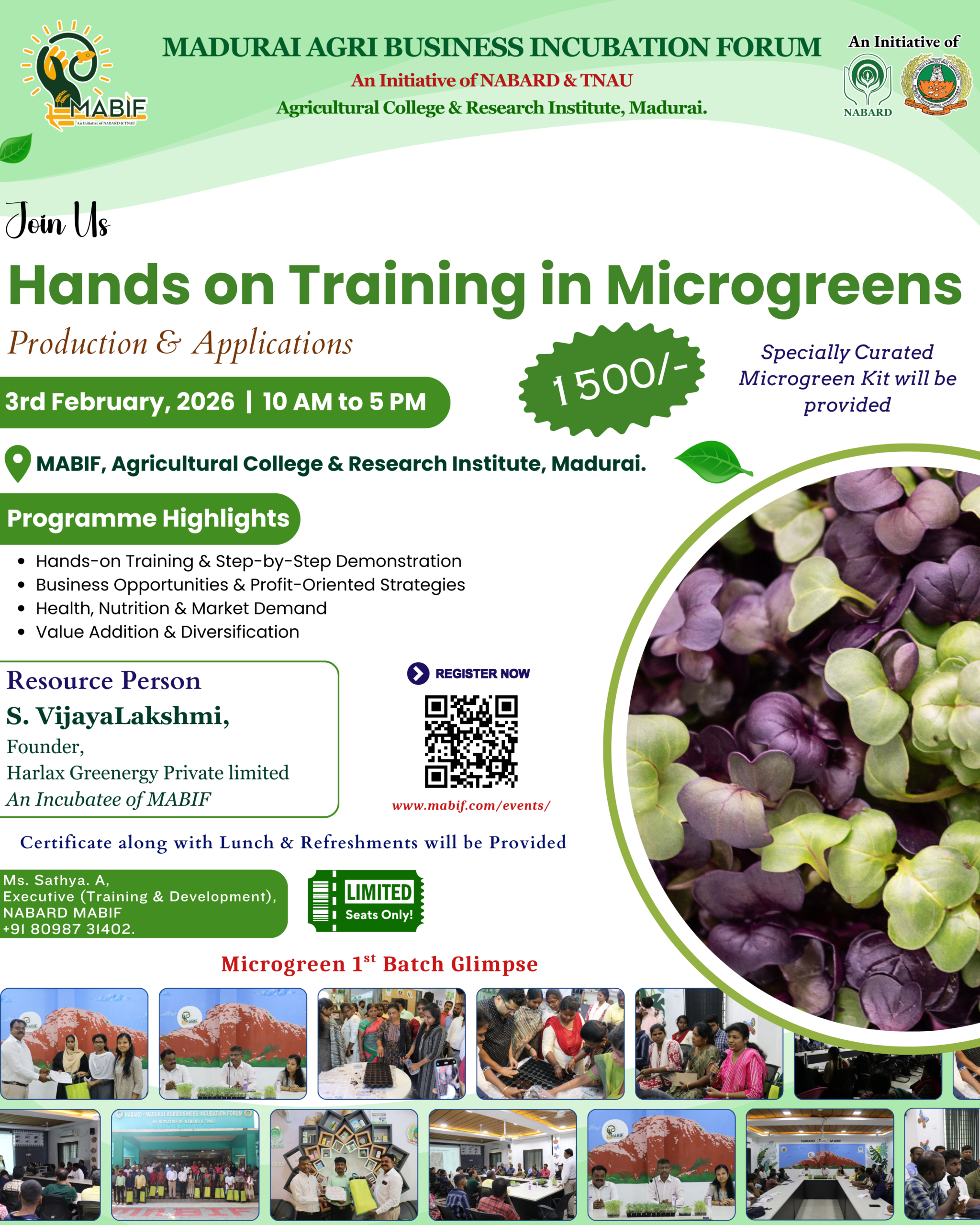 Join us for an exclusive one-day training on Microgreens Production and Utilization Techniques and unlock the potential of growing nutrient-rich superfoods right from your home!