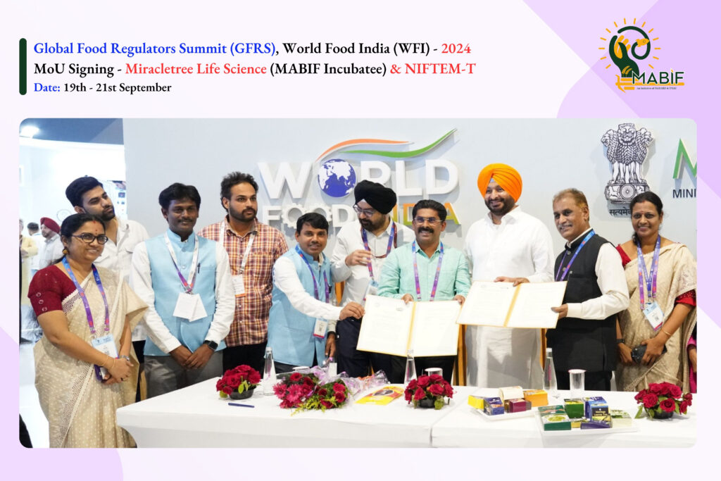 Additionally, M/s. Miracletree Life Science and M/s. Kugram Super Foods Pvt Ltd, a promising incubatees of MABIF, has also signed a MoU with NIFTEM-T, further enhancing the partnership’s impact on the industry and academic collaboration for student’s entrepreneurship development.