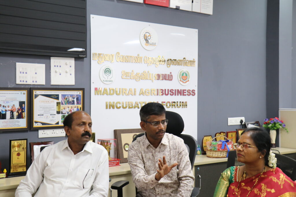 During the visit, Er. Ganesh Moorthy K, CEO, NABARD MABIF explained the incubation Services that are being provided to Startups/FPOs/Farmers/Students and visited the Food Processing Centre which has Milk Processing Unit, Retort Processing Unit, Chikki Processing Unit, Animal Feed Production Unit and Food Testing Laboratory, etc.,