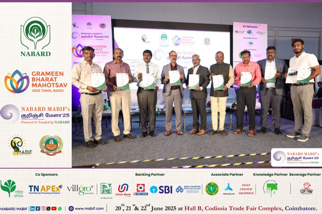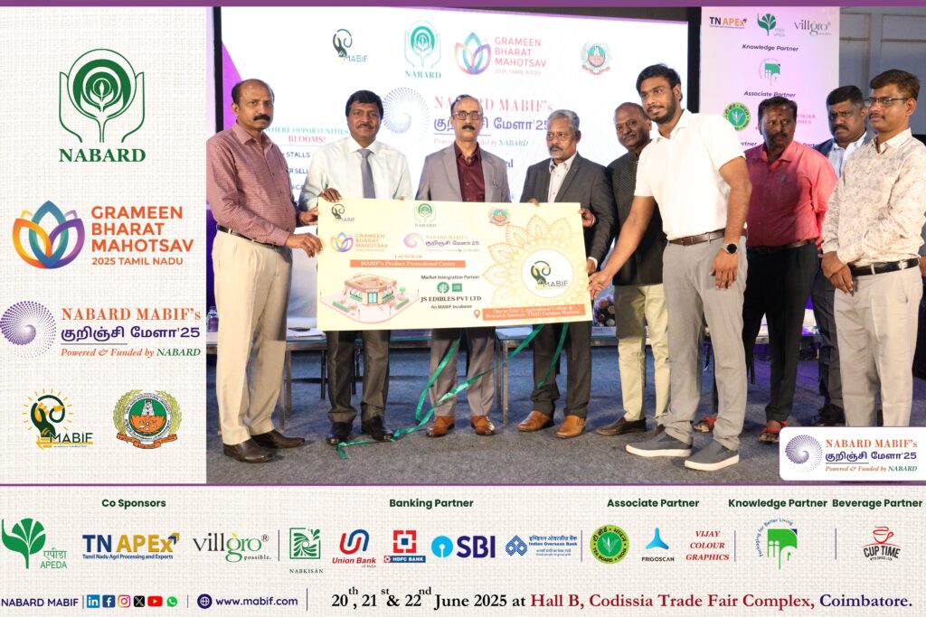 The launch of the MABIF’s Product Promotional Centre and Product Catalogue was graced by esteemed dignitaries, including Shri. Ganapathi P. Rajkumar, Member of Parliament, Coimbatore, Dr. Ajay Kumar Sood, DMD, NABARD HO, Mumbai, Dr. R. Thamizh Vendan, Acting Vice Chancellor, TNAU, Coimbatore, Shri. R. Anand, CGM, NABARD TN RO, Chennai, Dr. E. Somasundaram, Director, DABD, TNAU, Coimbatore, Dr. P.P. Mahendran, Dean, AC&RI, Madurai, Shri. Suga Kumaravel, Director, Suga Coco, Coimbatore, Shri. S.S. Vaseeharan, GM, NABARD TN RO, Chennai, Mr. C. Thirumala Rao, AGM, NABARD, Coimbatore, Thiru. G. Sv. Amuthan, Joint Director of Agriculture (AB) and Er. K. Ganesh Moorthy, ED & CEO, NABARD MABIF.