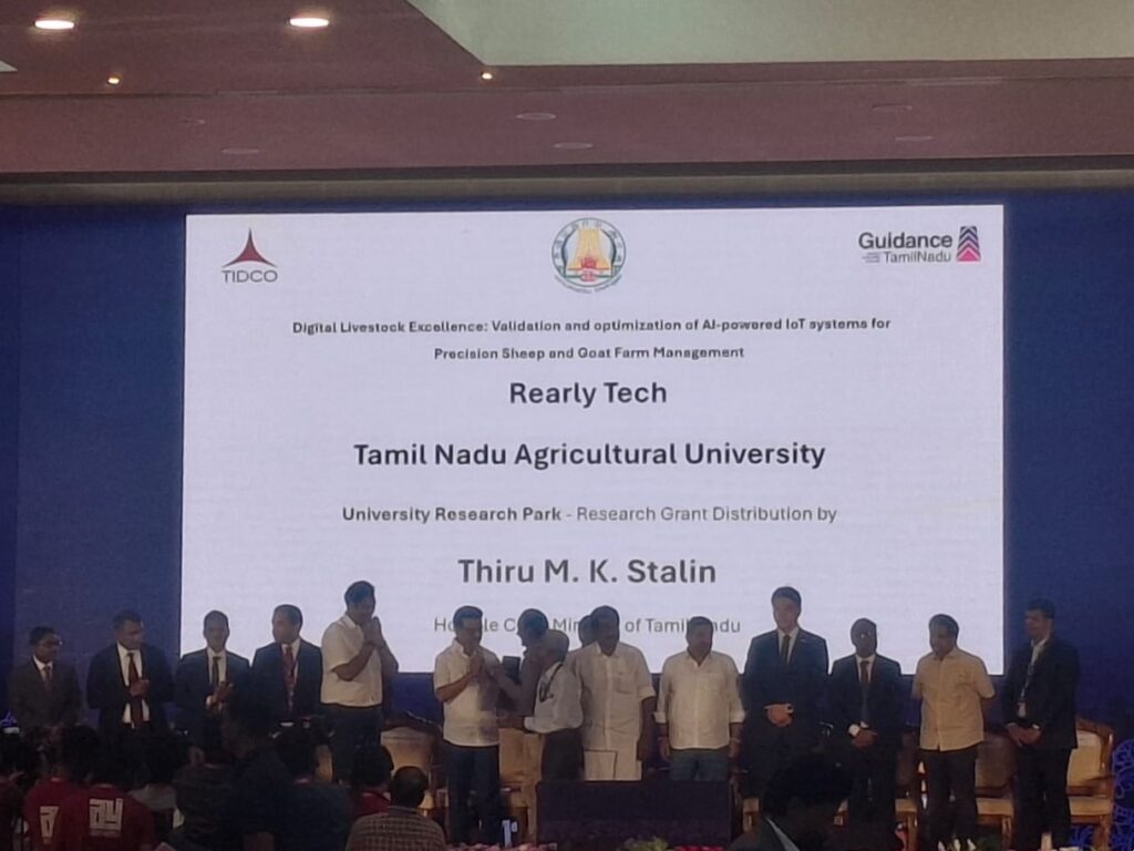 The approved project, titled “Digital Livestock Excellence: Validation and Optimization of AI-powered IoT Systems for Precision Sheep and Goat Farm Management,” is being implemented in collaboration with the Agricultural College and Research Institute, Madurai, and received the grant amount from the Honourable Chief Minister of Tamil Nadu, marking a significant milestone in advancing technology-driven solutions for the livestock sector.