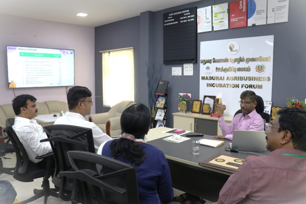 Excitingly, They expressed interest in potential incubation collaboration with MABIF. During the visit, Er. Ganesh Moorthy K, CEO, MABIF explained the incubation Services that are being provided to Startups/FPOs/Farmers/Students and visited the Food Processing Centre which has Milk Processing Unit, Retort Processing Unit, Chikki Processing Unit, Animal Feed Production Unit and Food Testing Laboratory, etc.,