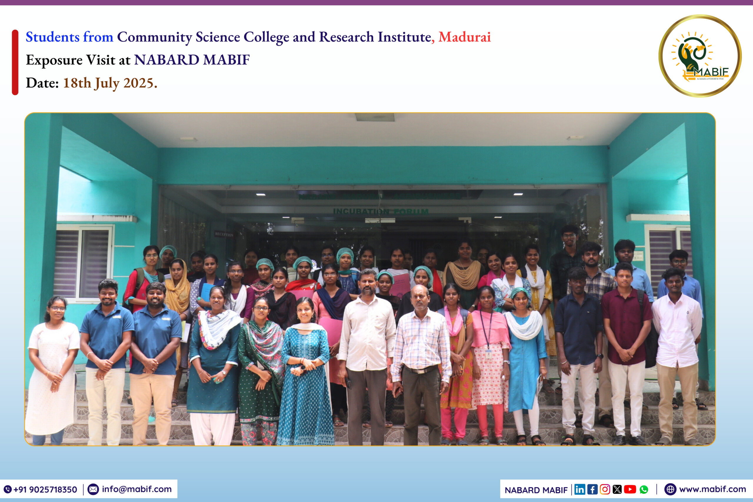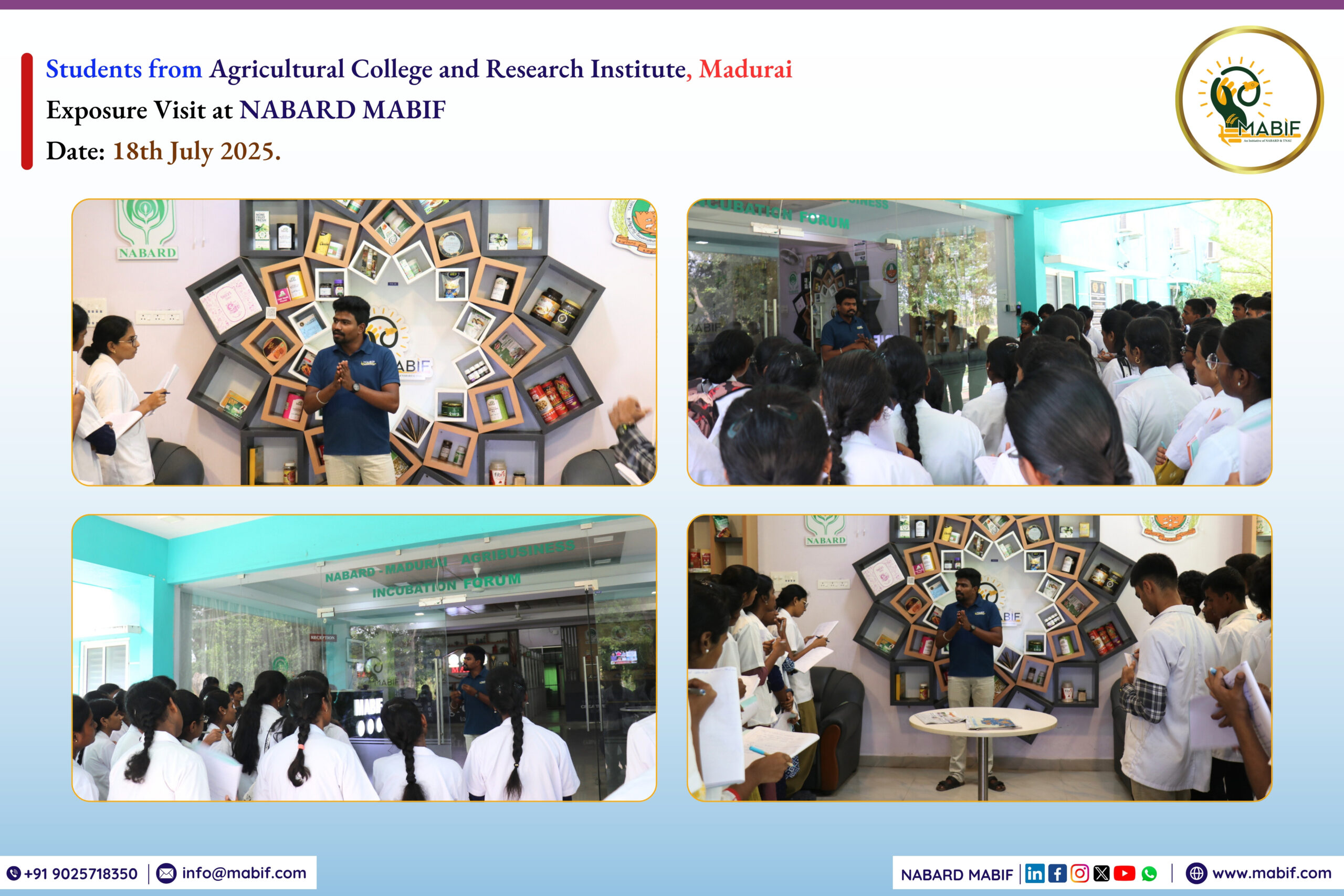 As a part of their exposure visit, Students from Agricultural College and Research Institute and Community Science College and Research Institute, Madurai visited the MABIF, to know about the incubation centre activities towards the empowerment of startup ecosystems. MABIF explained the opportunities that are provided by the government to the startups/entrepreneurs/Farmers/FPOs for their products/services.