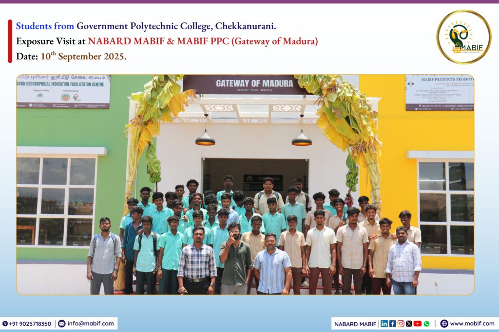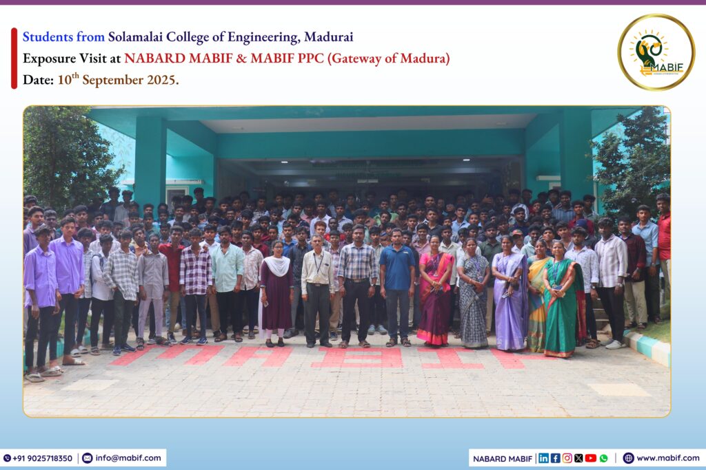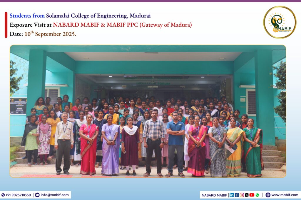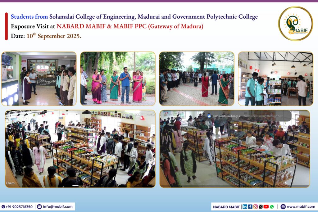 As a part of their exposure visit, Students from Solamalai College of Engineering and Government Polytechnic College, Madurai visited the MABIF, to know about the incubation centre activities towards the empowerment of startup ecosystems. MABIF explained the opportunities that are provided by the government to the startups/entrepreneurs/Farmers/FPOs for their products/services and visited the MABIF Products Promotional Centre (Gateway of Madura) and Food Processing Centre which has Milk Processing Unit, Retort Processing Unit, Chikki Processing Unit, Animal Feed Production Unit and Food Testing Laboratory, etc.,