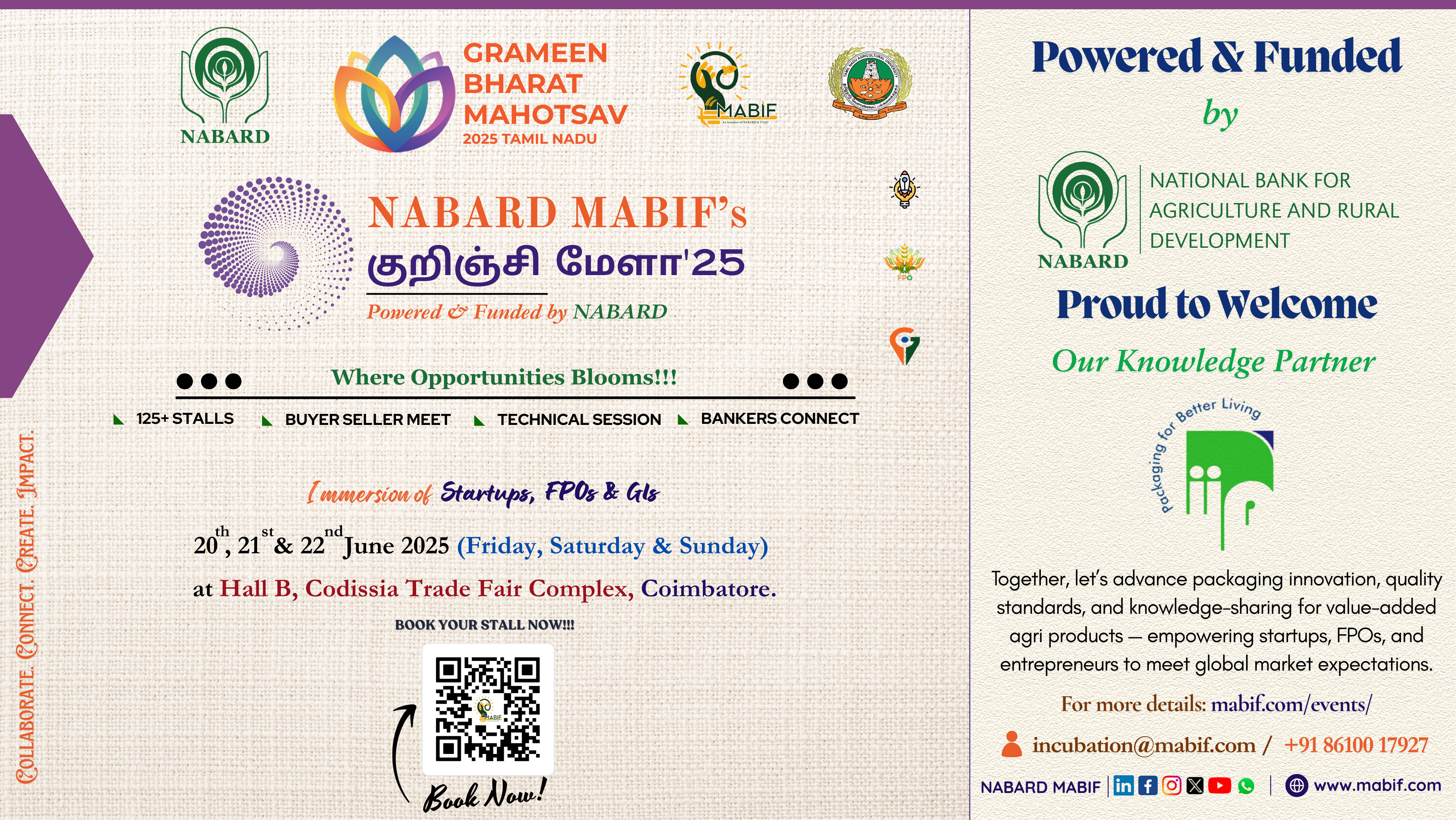 We’re excited to welcome “Indian Institute of Packaging – IIP” as our Knowledge Partner for Grameen Bharat Mahotsav 2025 (குறிஞ்சி மேளா – 2025) — powered & funded by NABARD – National Bank for Agriculture and Rural Development and hosted by NABARD MABIF.