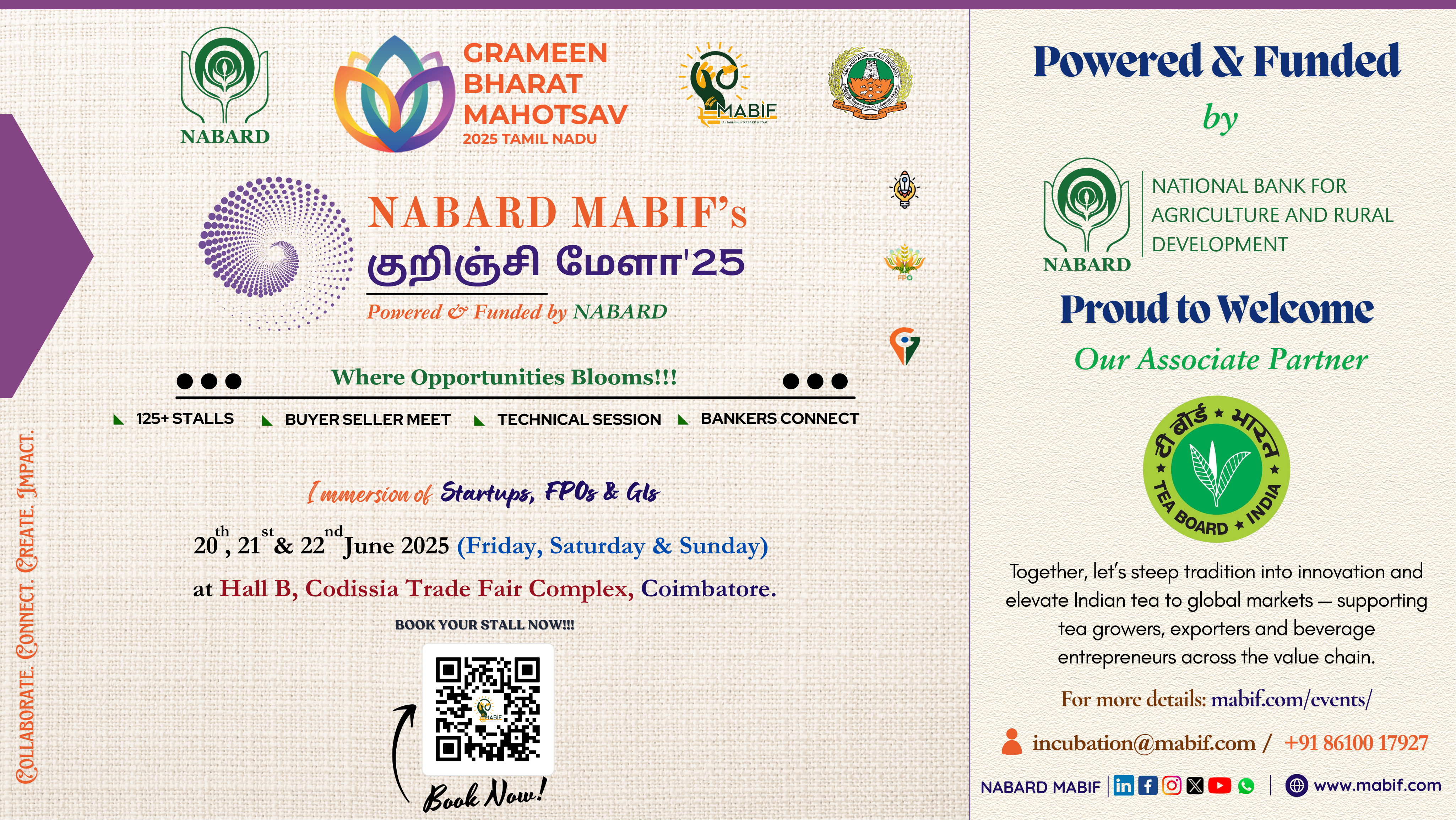 We’re excited to welcome “Tea Board of India” as our Associate Sponsor for Grameen Bharat Mahotsav 2025 (குறிஞ்சி மேளா – 2025) — powered & funded by NABARD – National Bank for Agriculture and Rural Development and hosted by NABARD MABIF.