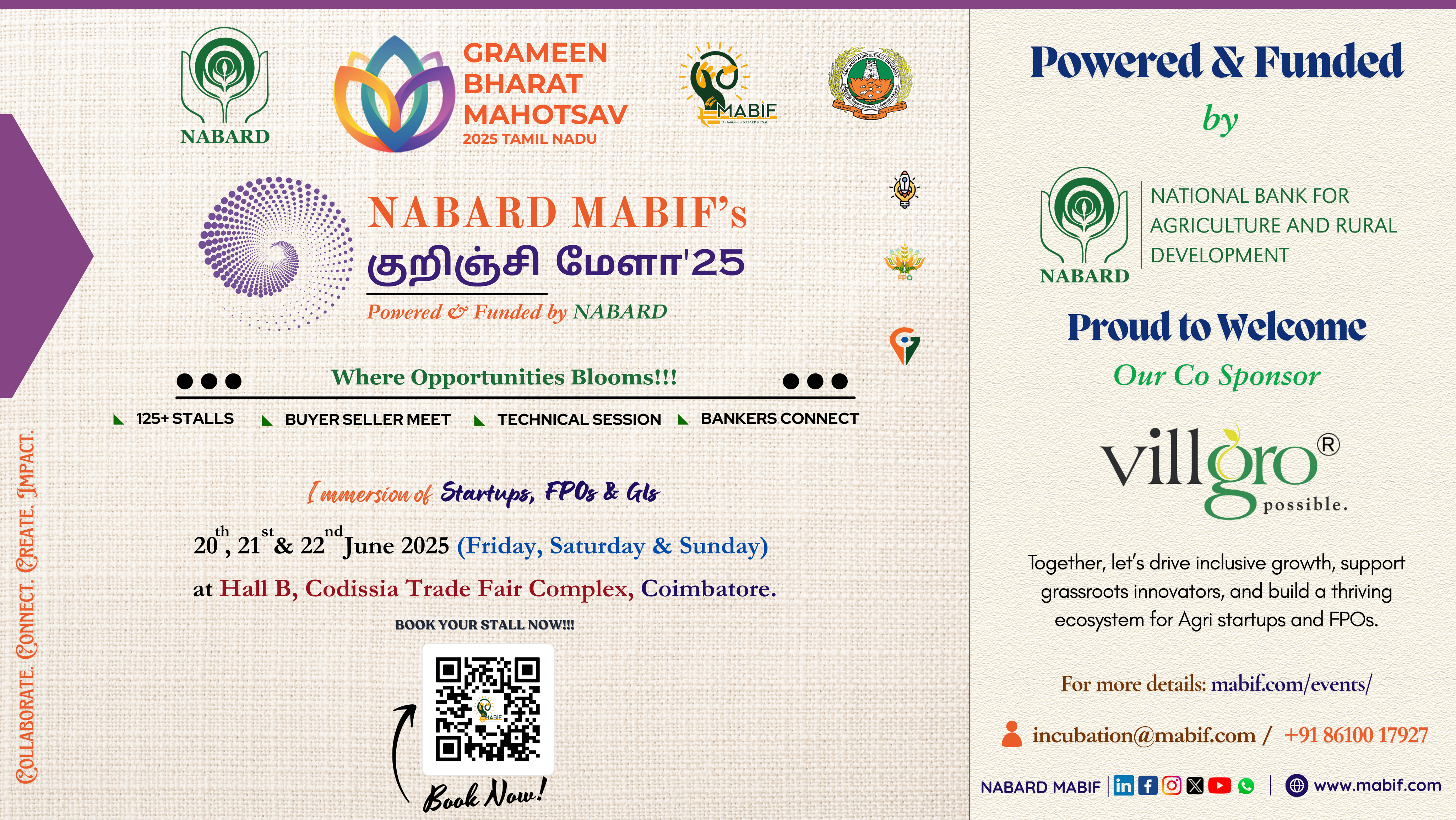 We’re excited to welcome “Villgro ” as our Co-Sponsor for Grameen Bharat Mahotsav 2025 (குறிஞ்சி மேளா – 2025) — powered & funded by NABARD – National Bank for Agriculture and Rural Development and hosted by NABARD MABIF.